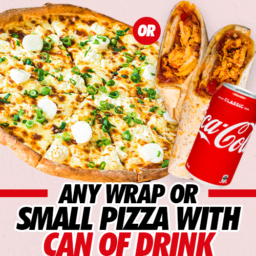 Any Wrap or SML Pizza with Can of Drink$14.95
