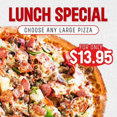Any Large Pizza for $10 during lunch hours.$10Any Large Pizza