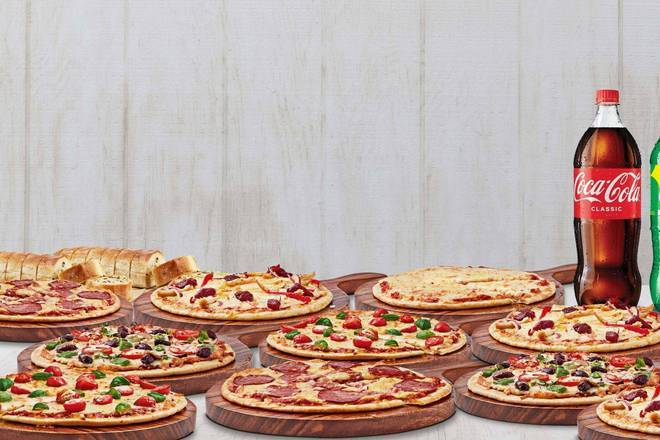 Any 10 LRG Pizzas + 2 GB + 2x 1.25L$179.95Any 10 LRG Pizzas + 2 GB + 2x 1.25L