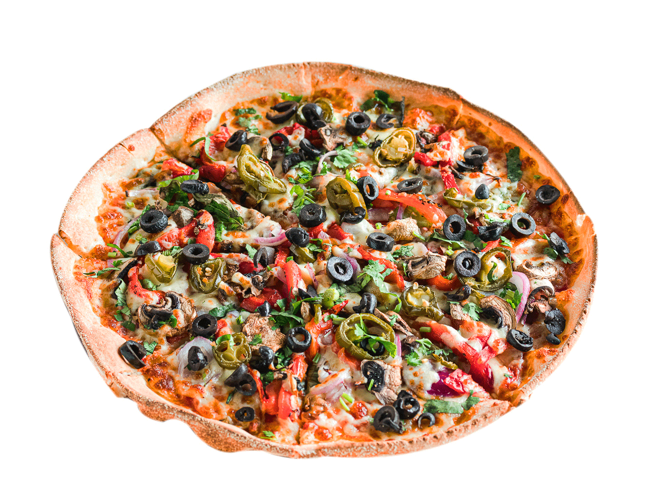 Tomato and Herb Base, Garlic Sauce, Fire Roasted Capsicum, Mushroom, Onion, Spinach, Jalapenos, Olives, Cheese topped with Spring OnionsChoose one