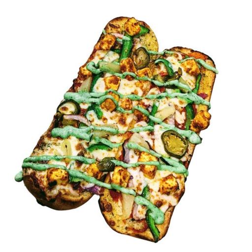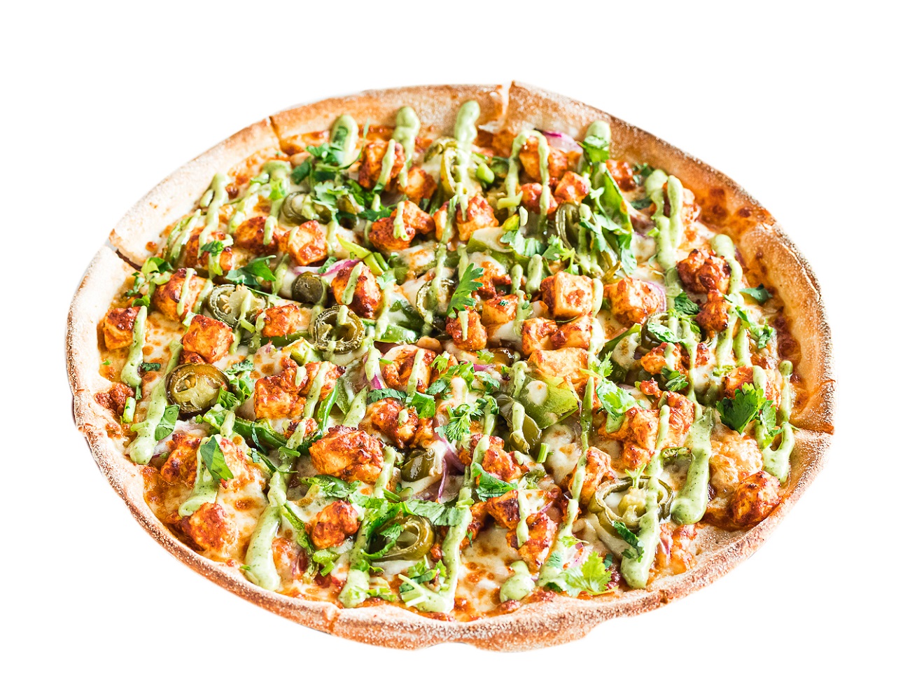 Chilli base, chilli flakes, soya chunks, spanish onion, capsicum, tomato, mozzarella, jalapeno and mint mayoChoose one