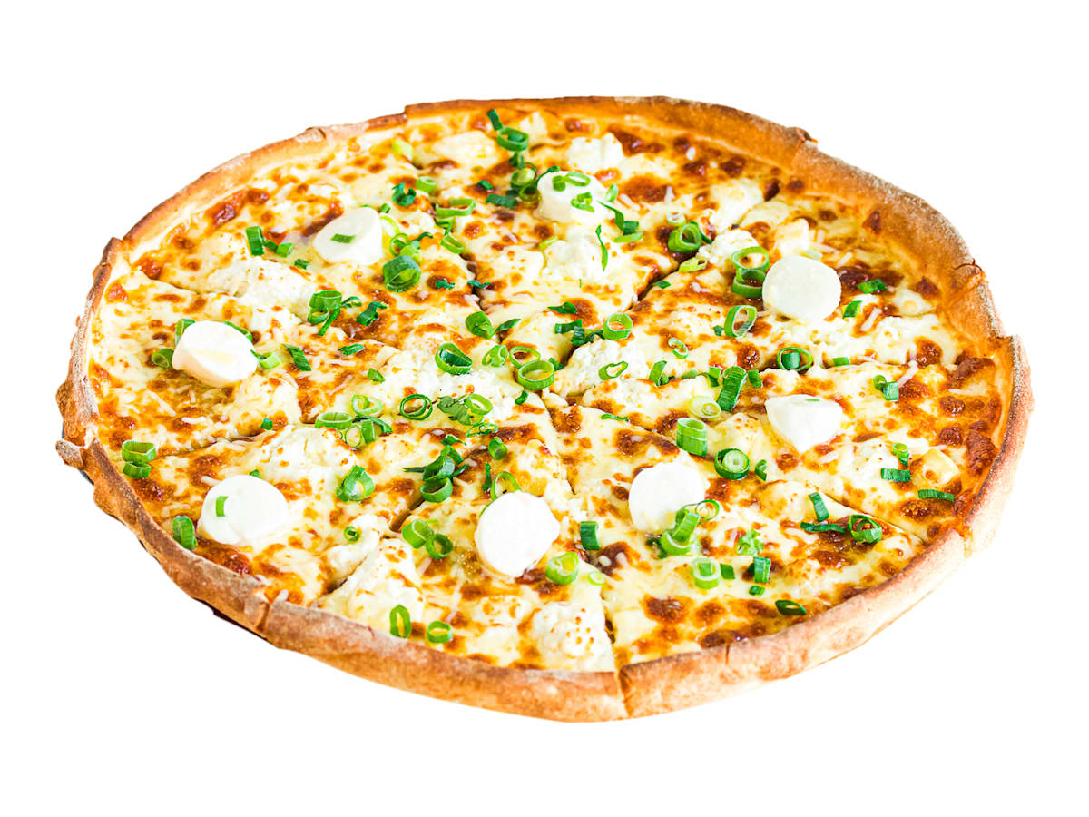 Crème fraîche sauce, cheese, feta cheese, bocconcini, parmesan topped with spring onionsChoose one
