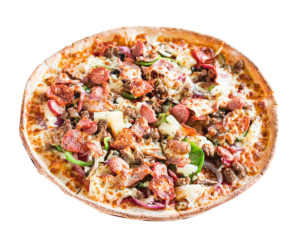 Tomato Herb Sauce, Onion, Capsicum, Mushroom, Pineapple, Beef, Pepperoni, Sujuk, Cheese and OreganoChoose one