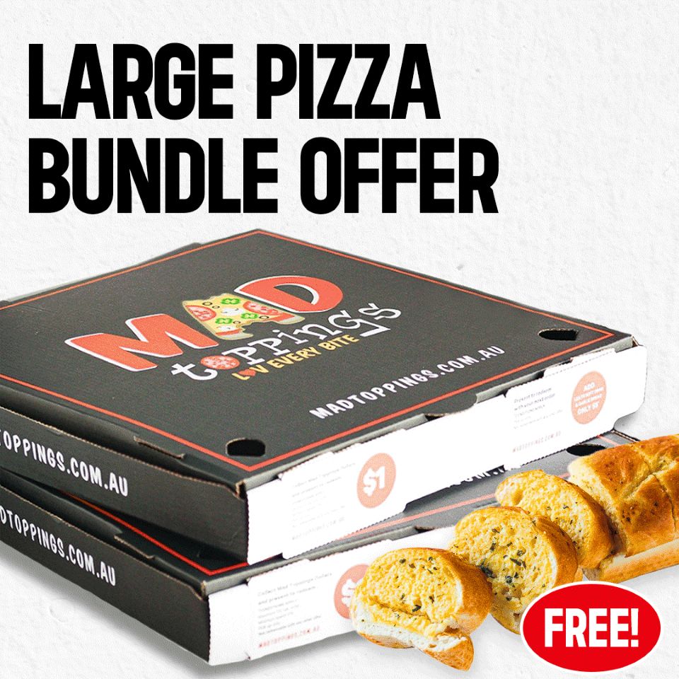 Large Pizza Bundle OfferAny 2 LRG MAD Pizzas + FREE Garlic Bread