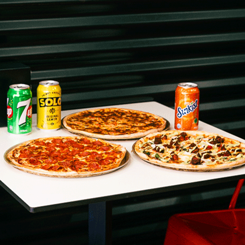 Family Bundle Deal$72.95Any 3 Large Pizza, Garlic bread, Chips, Brownie, and 1.25L Drink- All Day Pizza Combo$30.951 Large Pizza, 1 Bottle of Drink , Select 1 - Garlic Bread or Fries.
