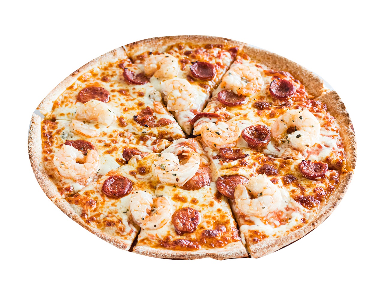 Tomato and Herb Base, Chorizo, Prawns and CheeseChoose one