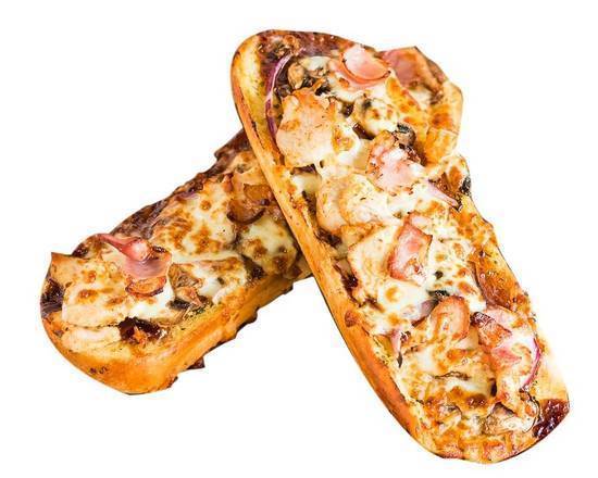 Tomato & herb sauce, onions, capsicum, mushrooms, pineapple, bbq chicken topped with cheese