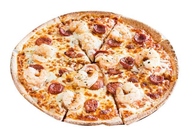 Tomato and Herb Base, Chorizo, Prawns and CheeseChoose one